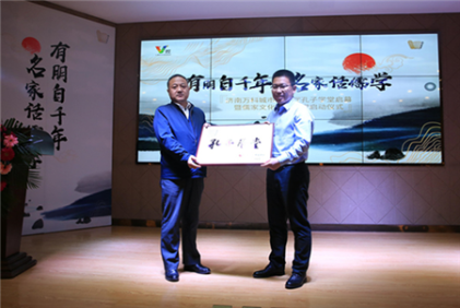 值4月23日世界读书日之际,“孔子学堂”落户济南万科v盟城市会客厅。中国孔子基金会副秘书长、秘书处党组成员刘廷善,中国孔子基金会孔子学堂特聘专家、儒学与社会发展研究所所长王蔚,济南万科党支部书记、历城事业部总经理李凯出席授牌仪式。