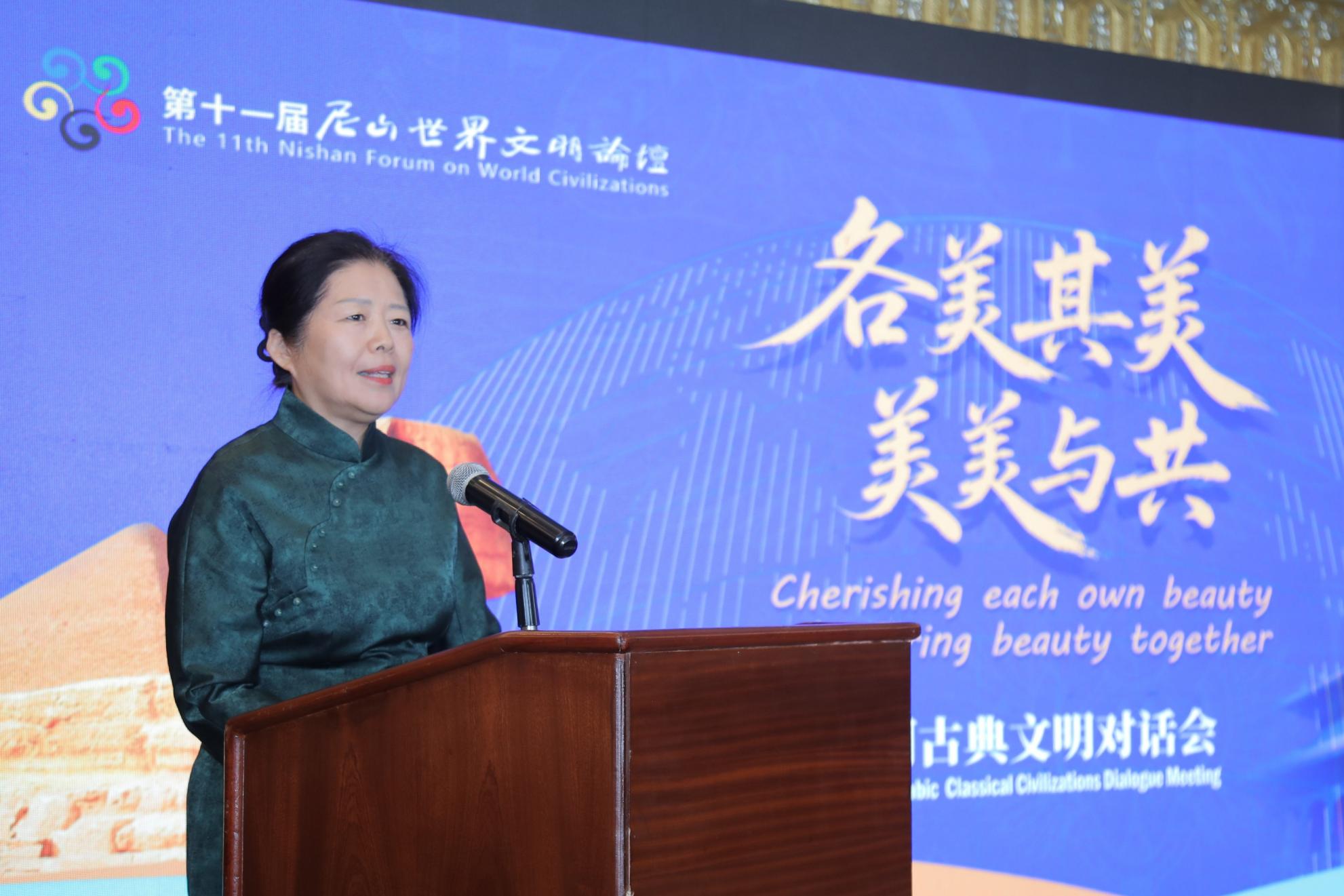 本次文明对话会的主题是“各美其美・美美与共——中阿文明交流互鉴”。埃及文化部前副部长兼国家电影中心负责人哈立德·阿卜杜勒·贾利勒教授,山东师范大学党委书记冯继康教授,阿拉伯联盟中国事务专家迪亚·赫勒米教授,哈桑·拉杰布教授,中国社会科学院世界宗教研究所伊斯兰教研究室主任、中国宗教学会伊斯兰教专业委员会主任李林教授,阿齐兹教授,尼山世界儒学中心(中国孔子基金会秘书处)科研管理部副部长、研究员路则权围绕主题,分别作学术发言。