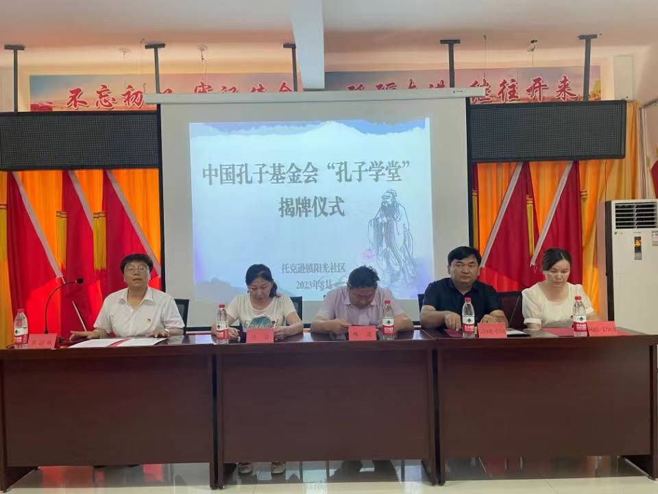 为推动中华优秀传统文化创造性转化和创新性发展,8月13日下午,新疆维吾尔自治区吐鲁番市托克逊镇阳光社区举行“孔子学堂”揭牌仪式。托克逊县委统战部常务副部长陈尧、托克逊镇人民政府镇长马合木提·托合提、托克逊县第一小学副校长马慧、托克逊镇副镇长阿迪拉·艾乃吐力等领导,融媒体中心工作人员以及师生代表等共计40余人参加了此次“孔子学堂”揭牌仪式。