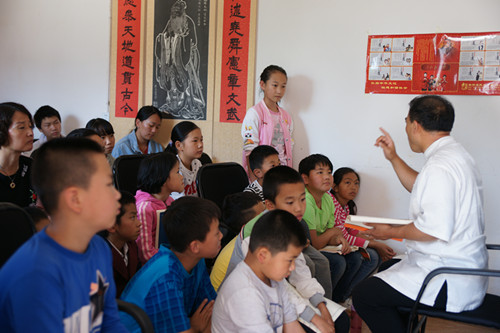 课间休息,孩童们自在嬉戏玩耍,成人间便相互交流读经感受,不亦乐乎。更有老师带领大家做养生运动晨操,疏通经络,强健体魄。