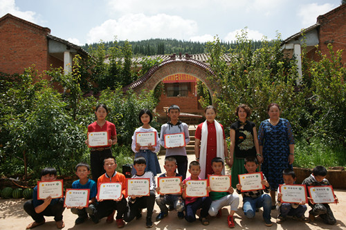 终到离别时,收拾好行囊,心中却满是眷恋不舍。抬头瞭望,湛蓝明净的天空,几朵白云如棉若丝。 苍翠的群山重重叠叠,梨树,核桃树,苹果树,已是果实累累,让人怜爱欢喜。大家相互话别,七天的共处,不觉已如一家人,道不尽的,是对彼此未来的无尽祝福。