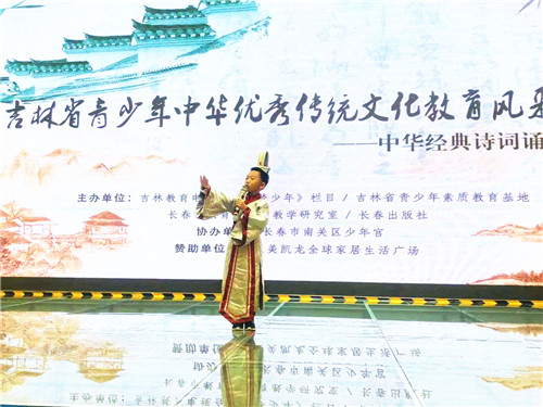 为了全面落实教育部《完善中华优秀传统文化教育指导纲要》的精神,践行社会主义核心价值观 , 培养富有民族自信心和爱国主义精神的社会主义事业建设者和接班人,吉林教育电视台联合吉林省青少年素质教育基地、长春市教育局教育教学研究室、长春出版社、南关区少年宫孔子学堂等多家单位举办的“吉林青少年中华优秀传统文化教育风采展示——中华经典诗词诵读季”圆满落幕。