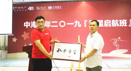 中国孔子基金会秘书处副秘书长、孔子学堂推进委员会主任邢成湖同志,中国孔子基金会秘书处普及传播部主任、孔子学堂推进委员会副主任张华同志,中国孔子基金会孔子学堂推进委员会副主任、济南市府学文庙服务中心主任吕智勇同志,中国孔子基金会秘书处交流合作部副主任张爱洁同志,中海发展总部创新业务发展部经理李昆、济南公司创新业务部经理侯建文等参加活动。