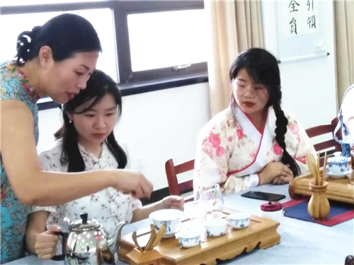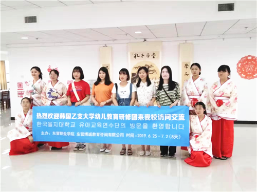 6月5日下午,韩国乙支大学幼儿教育专业的学生到东营职业学院孔子学堂进行传统文化的学习和交流。经茶艺喻老师的精彩讲授,韩国学生对中国博大精深的茶文化产生了浓厚兴趣,亲自实操,仔细品鉴,回味悠长。接下来在孔子学堂书法协会会长的带领下,体验了中华瑰宝---书法艺术,简单的“中国、韩国”两个词语,用书法艺术来展示,凝聚了中韩两国的友谊。还有一曲京腔京韵的“梨花颂”和美丽的汉服结合,让韩国学生陶醉其中。此次交流活动,中韩两国学生收获满满,收到预期效果。
