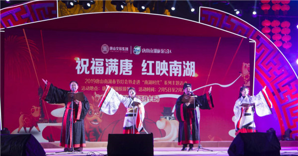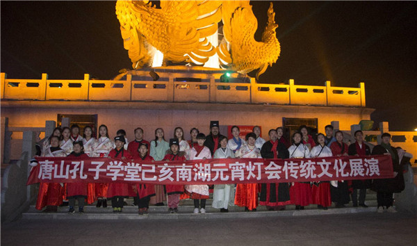 2月18日,己亥上元佳节前夕,恰逢唐山孔子学堂的每周一读书会,在唐山市文旅集团的大力支持下,孔子学堂志愿者们,身着各色汉服,登上了丹凤朝阳广场中央舞台,以歌舞朗诵、民乐表演、齐读《大学》,多种形式欢庆元宵佳节,展现了唐山孔子学堂志愿者们对传统文化的喜爱和传承,为“祝福满唐 红映南湖”2019唐山南湖春节灯会增添了浓墨重彩的一笔。
