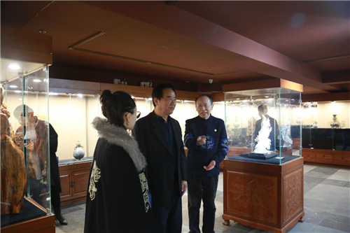 袁风遥先生一行首先参观了一楼大厅正在举办的“孔子儒家文化系列展之二:景泰蓝掐丝珐琅展”,丰富而珍贵的展品博得了唐山客人的阵阵称赞。二楼是传统茶艺与熏香、古琴与汉舞、丝绸与绣品展演以及举行小型研讨会的场所,所摆放的8.8米长的花梨木桌案引起了客人浓厚兴趣。三楼则是以中国历代医药大家命名的中医体验馆,袁主任一行也亲身感受到中华传统医药文化的博大精深。到达四楼孔子儒学大学堂以后,袁主任一行首先恭敬地向孔子像致敬,并观看了由青岛市孔子文化交流协会孔子学堂摄制的“承先师故训,创儒学新风”专题宣传视频。此外,袁主任一行还游览了颇具江南园林风格并携有小桥流水、亭台楼阁的后花园,他对巧夺天工的中国传统建筑更是赞不绝口。