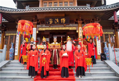 整场寿礼仪式在绫罗伞盖的引导下拉开序幕,百岁老寿星在两位女官的搀扶下入堂。首先,进行了庄重的祭祖仪式。随后“福、禄、寿、禧”四星依次为老寿星拜寿,并分别献上最美好的祝愿。然后,延循古礼,子女儿孙相继拜寿,为老寿星献上寿桃、寿面,祝愿老寿星福如东海、寿比南山。最后,6位身着传统汉服的女官还表演了汉舞等节目,把全场气氛推向了一个高潮。整场传统寿礼活动体现了“孝”为“礼”之始的儒家思想。孝作为一种伦理道德修养,助于“礼”的实施。在孔子看来,治家靠孝,治国靠礼,两者相辅相成,共同维护着家庭的和睦稳定,推动着社会和谐安定。孝作为伦理道德的一个重要代表,孩子会在父母的照料下健康成长,家庭之间能够和谐相处。这次寿礼活动也充分展现出身心和谐、家庭和谐、其乐融融景象。