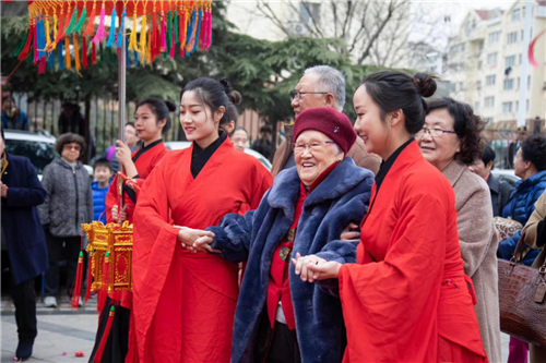 中华民族历来讲究孝道,崇尚尊老敬老。贺寿的礼俗,出自传统的人生信仰,植根于人们向往的“福、禄、寿、禧”当中。3月2日,为祝贺吴秀珍老人期颐之寿(百岁),青岛市孔子文化交流协会孔子学堂在青岛传汉堂文化艺术中心,举办了一场别开生面、蕴含儒家传统礼仪的百岁寿礼。整个仪式在遵崇儒家传统礼仪的基础上与现代民俗相结合,以弘扬和传承优秀齐鲁家风,为全社会形成注重家庭、注重家教、注重家风的良好氛围提供了正能量。