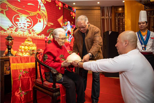 百岁老寿星辛苦劳作一生,她15岁就参加工作,先后培养7位儿女成才,整个家族已形成拥有40多人口“四世同堂”的大家庭。整个大家庭处处充满着爱,这无不体现出仁者爱人的思想,可以说“孝”是“仁”之本,仁是儒家思想中的核心。仁是儒家思想的基石和最高范畴,蕴含着人类最普遍的思想情感和最基本的道德原则。儒家之所以重视孝的观念,是因为孝的血缘亲情具有坚实的社会基础和长久的生命底蕴。作为人生追求的最高境界、社会发展的理想状态的仁,必须找到一个切入点予以实践,孝正好成为仁的切入点。通过孔子儒家传统寿礼让老人们幸福快乐,祝愿老年人延年益寿,同时,后辈们也通过这种传统文化的形式向老一辈表达自己的孝心。