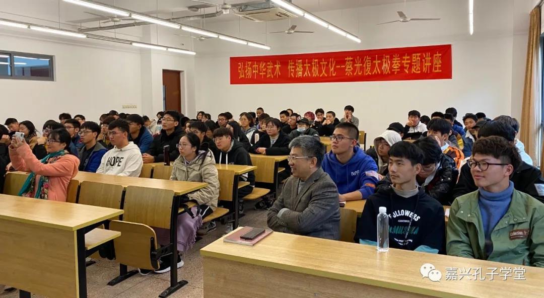 11月30日下午,一堂主题为《无极桩》的传统太极拳理论课在同济大学浙江学院报告厅举行。本次课程由中国孔子基金会文化大使、中国武术八段、嘉兴孔子学堂推广指导委员会名誉主任蔡光復先生主讲。