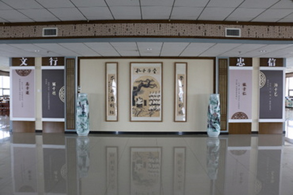 图书馆空间再造,凸显文化底蕴,通过对开放型空间和聚集性空间的考量,将传统文化元素、校园文化元素相结合,实现功能区域利用的最大化。围绕师生需求,规划设计集阅读共享、文化传播为一体的综合活动空间,充分发挥图书馆的服务育人功能。2020年下半年,图书馆将学堂进行重新装修,提高布局合理性,共设茶艺区、瑜伽区、古琴区、书画区、手工制作区、荣誉区等,提升了传统文化感染力,辅以学生作品加以点缀,包括书画作品、泥塑作品、布偶作品等。