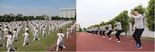 每天大课间,全体师生都会打一遍太极拳,白鹤亮翅,野马分鬃,一招一式,尽显太极柔中带刚、行云流水的神韵。
