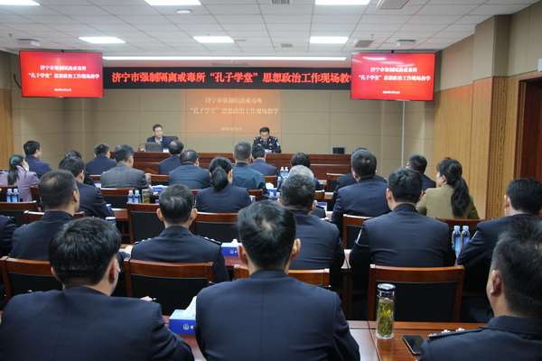 2023年4月11日,山东省司法行政思想政治工作(南片)专题调研座谈会在济宁召开,济宁市戒毒所《扎根优秀传统文化 提升思政工作质效》入选省司法行政系统思想政治工作创新方法典型案例选编。省司法厅领导实地考察济宁市戒毒所孔子学堂文化阵地后,对学儒润警理念和取得成效给予充分肯定。
