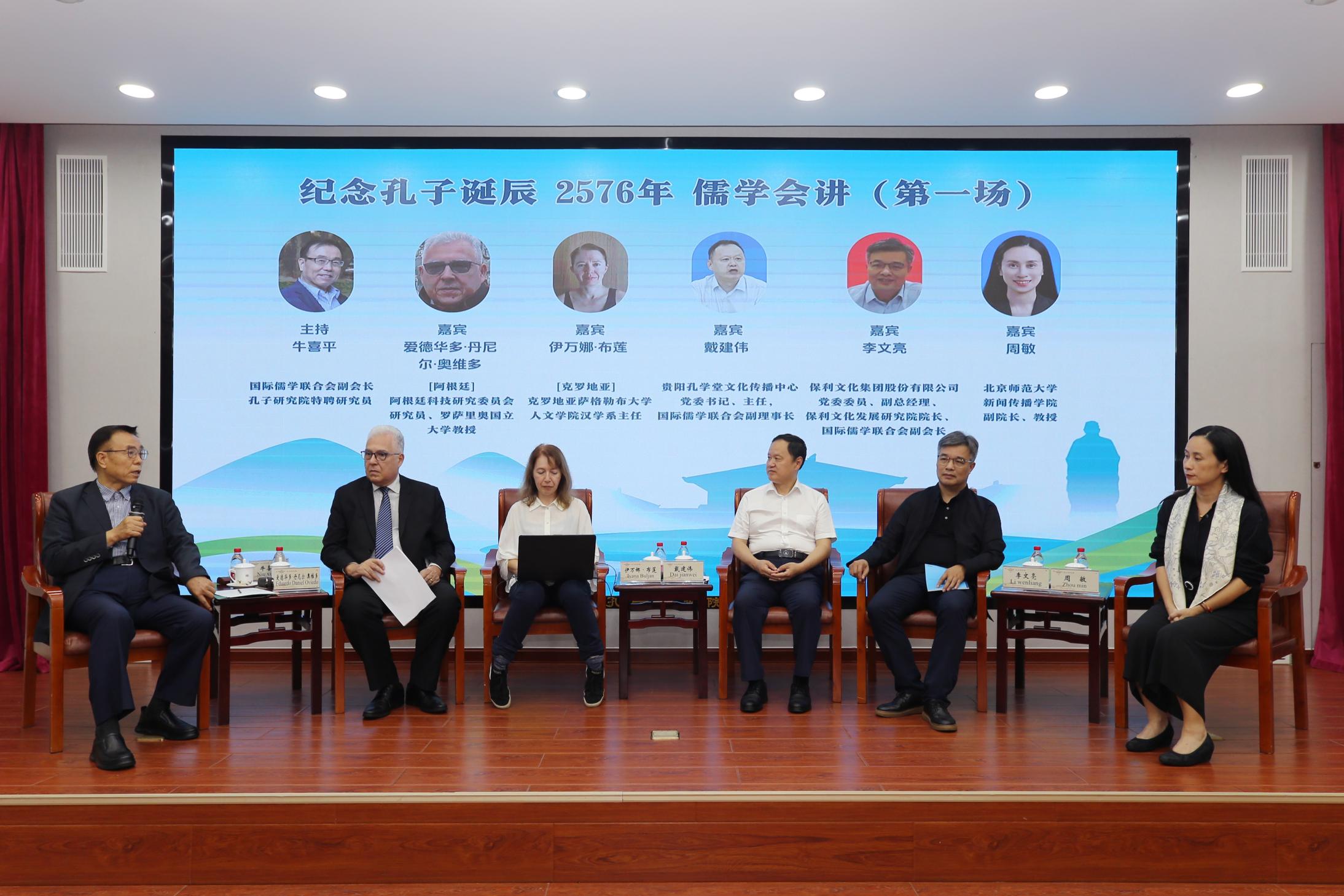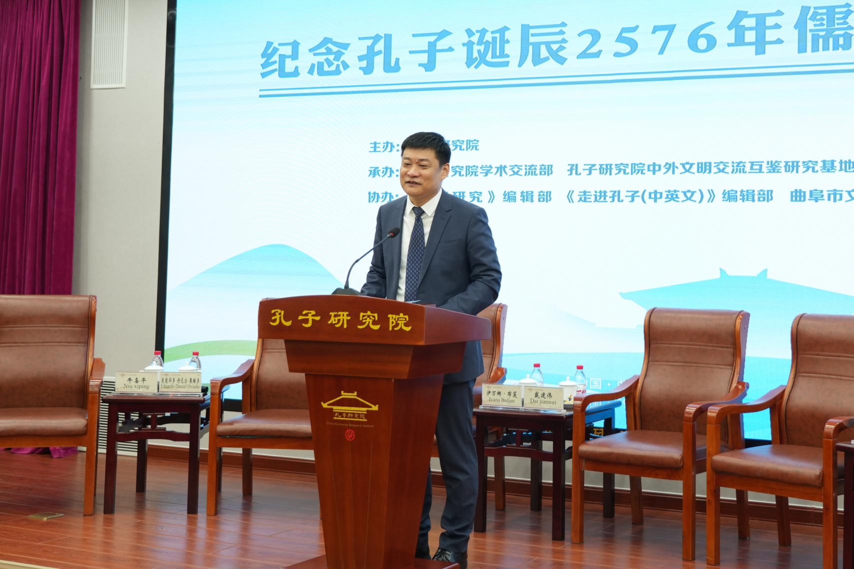 9月28日,纪念孔子诞辰2576年儒学会讲在孔子研究院举行。尼山世界儒学中心(中国孔子基金会秘书处)党委书记、副主任,中国孔子基金会副理事长、秘书长国承彦出席并致辞。尼山世界儒学中心(中国孔子基金会秘书处)党委委员、副主任、孔子研究院党委书记朱瑞显主持开幕式。