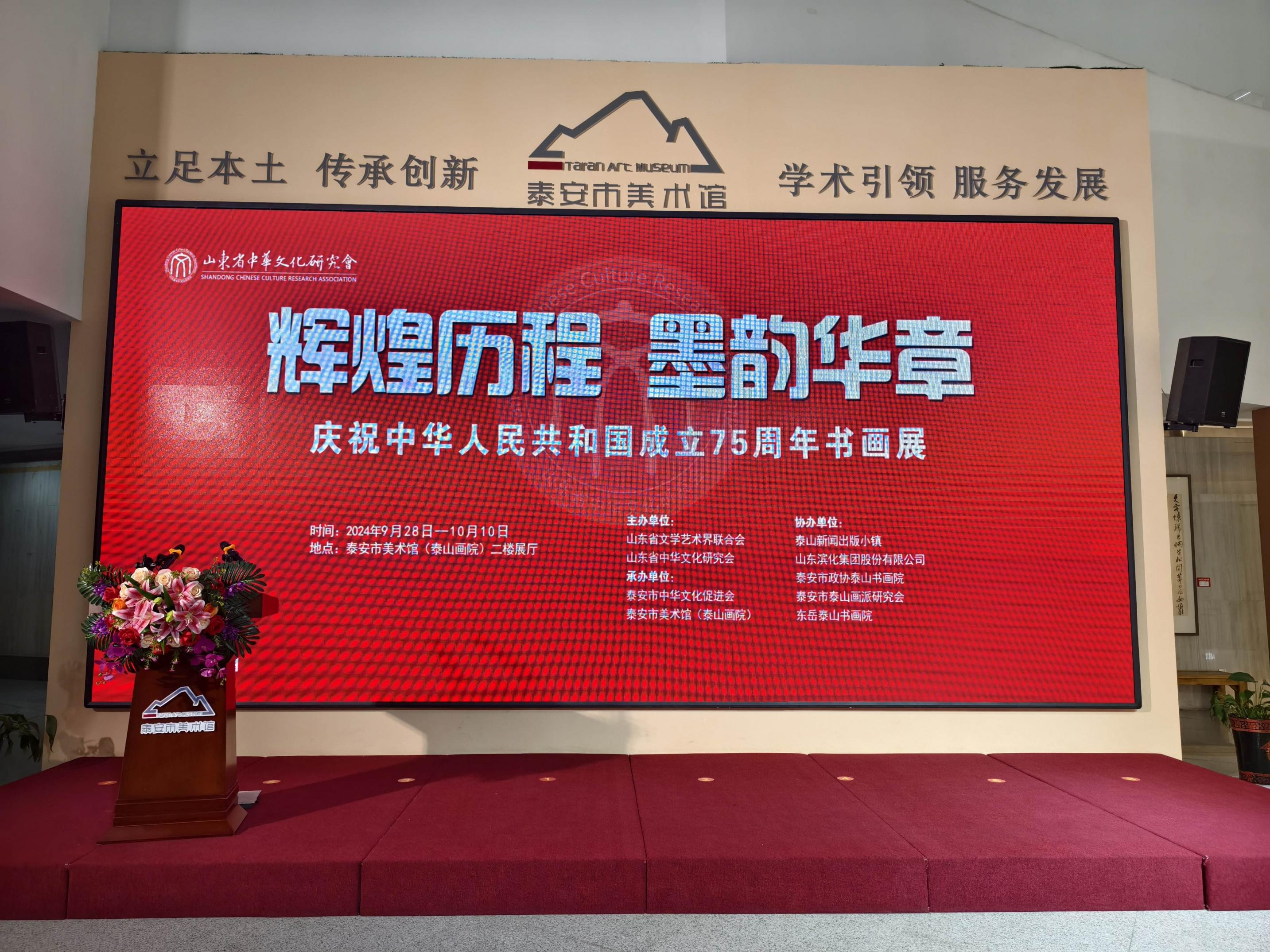 喜迎国庆展书画,共绘中华繁荣图。9月28日(国庆前夕),由山东省文学艺术界联合会、山东省中华文化研究会联合主办的“辉煌历程 墨韵华章——庆祝中华人民共和国成立75周年书画展”在泰安市美术馆盛大开幕。