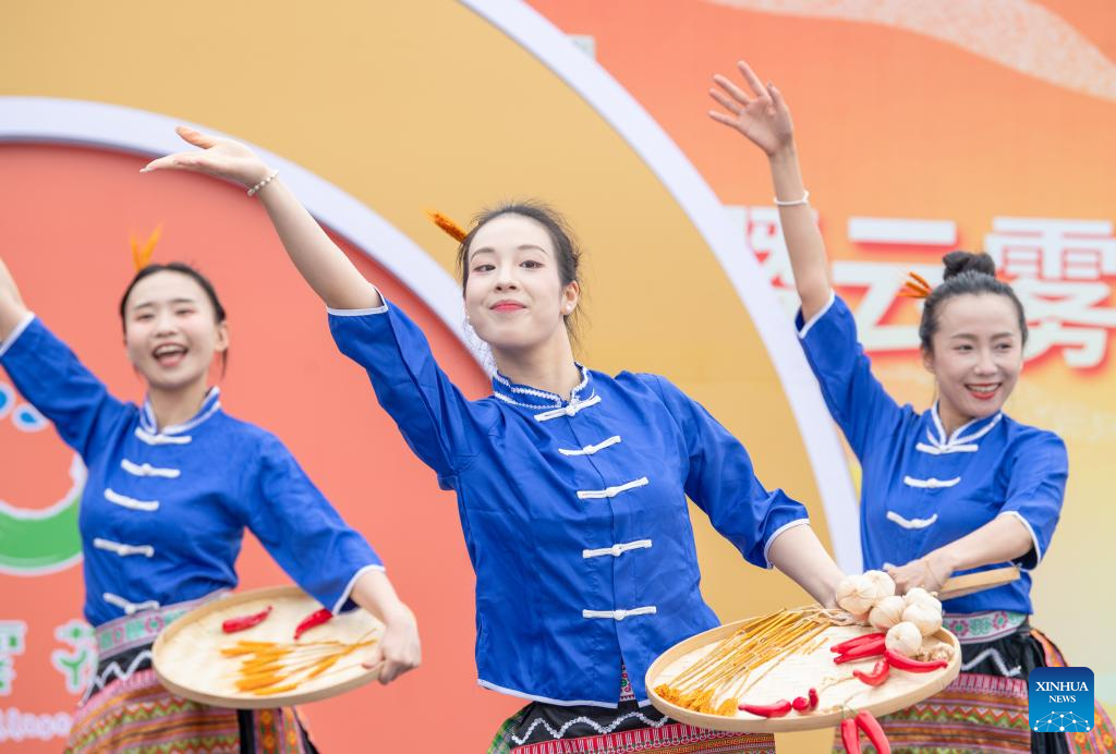 a performance is staged during a rural art fair in jiangjun village, bishan district, southwest china's chongqing municipality, sept. 29, 2025. (xinhua/tang yi)