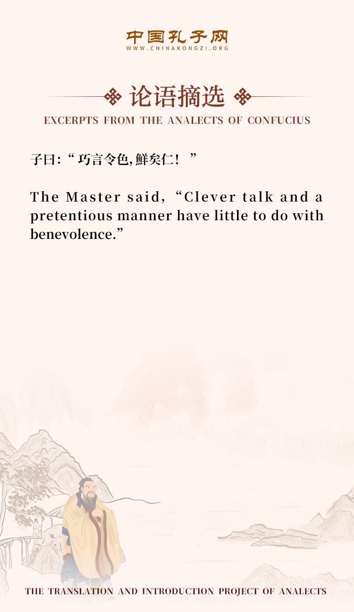 the master said,“clever talk and a pretentious manner have little to do with benevolence.”(see also 17.17)